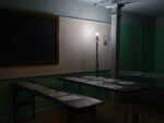 Iron meteorite dust, magnets, murex shell, quartz, bronze socketed axe head (Luristan, Iron Age, ca. 1000-650 BCE), Blickensderfer typewriter case (ca. 1897), gymnasium/community center stool, antique microscope case, banded jasper